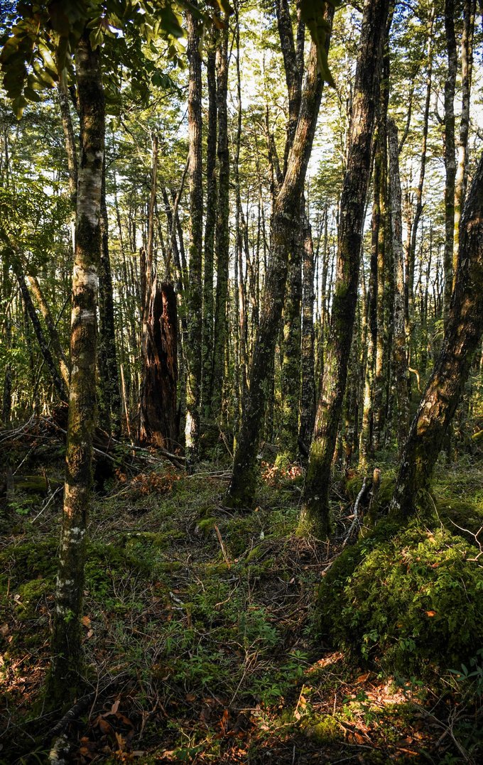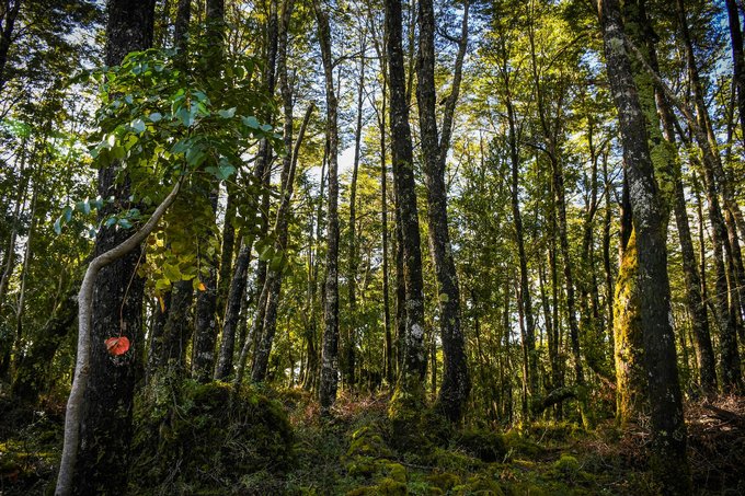 Bosque nativo con robles, arrayanes y coigües