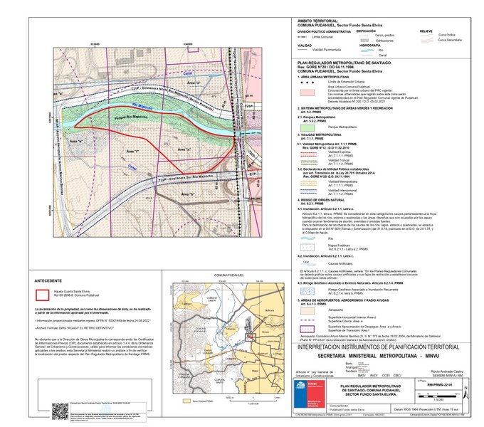 El terreno colinda con el Rio Mapocho, el que en su proximidad tiene zona de protección del terreno.