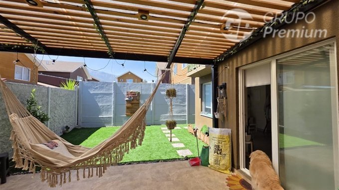 El exterior invita a disfrutar: un agradable patio con cobertizo y pasto sintético, perfecto para que los niños jueguen de forma segura o para compartir entretenidos momentos en familia.
