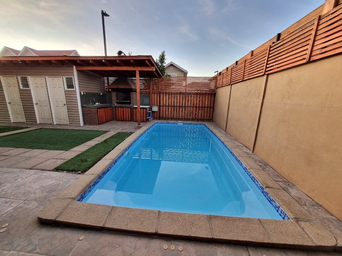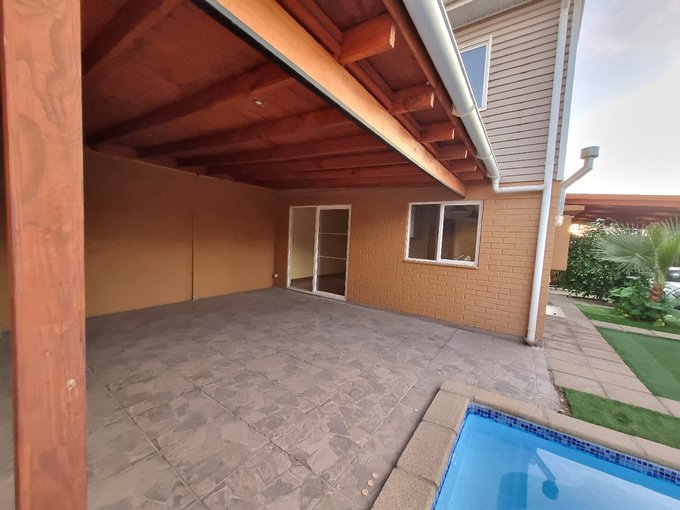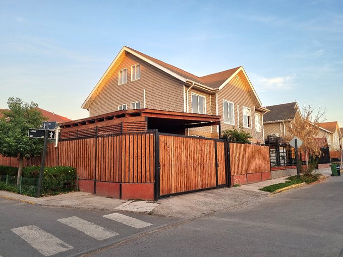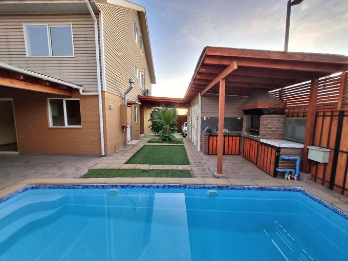 Casa en venta ubicada en un entorno residencial, con una superficie total de 190 m² y 150 m² útiles. La propiedad cuenta living, comedor con buena iluminación, cocina amoblada con desayunador, tres dormitorios, cuatro baños y amplia sala de estar, todo esto distribuido en dos niveles. En el exterior, dispone de piscina, quincho techado con parrilla, terraza, lavandería y bodega, además de dos estacionamientos bajo techo. La propiedad tiene orientación poniente.