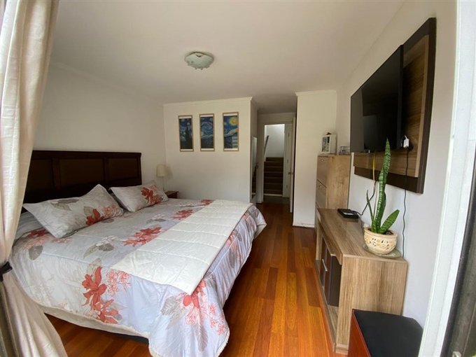 Elegante casa de dos pisos, completamente aislada, ubicada en exclusivo condominio Barrio Inglés, a pasos de la avenida principal y con excelente conectividad a Stripcenter Las Vizcachas, donde encontrarás supermercados Unimarc, gimnasio W Fitness, farmacia Cruz Verde, Starbucks y futura bencinera.