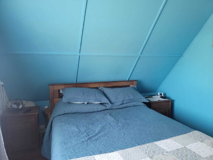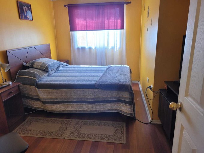 Un dormitorio con piso cerámico