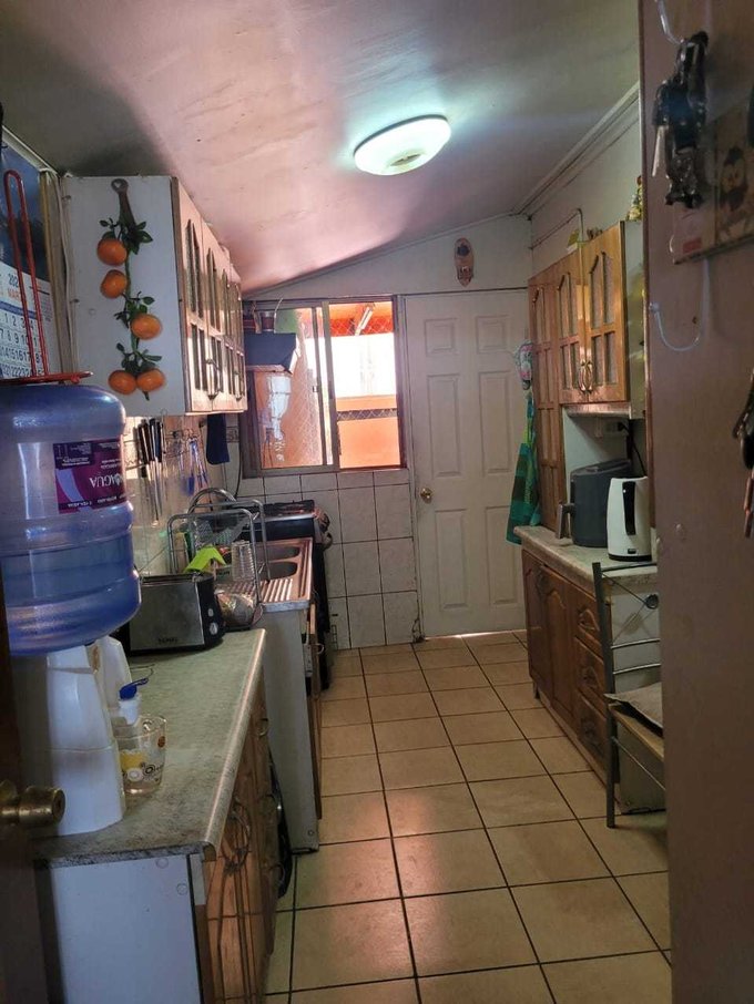 Una cocina amoblada con piso y muro cerámico