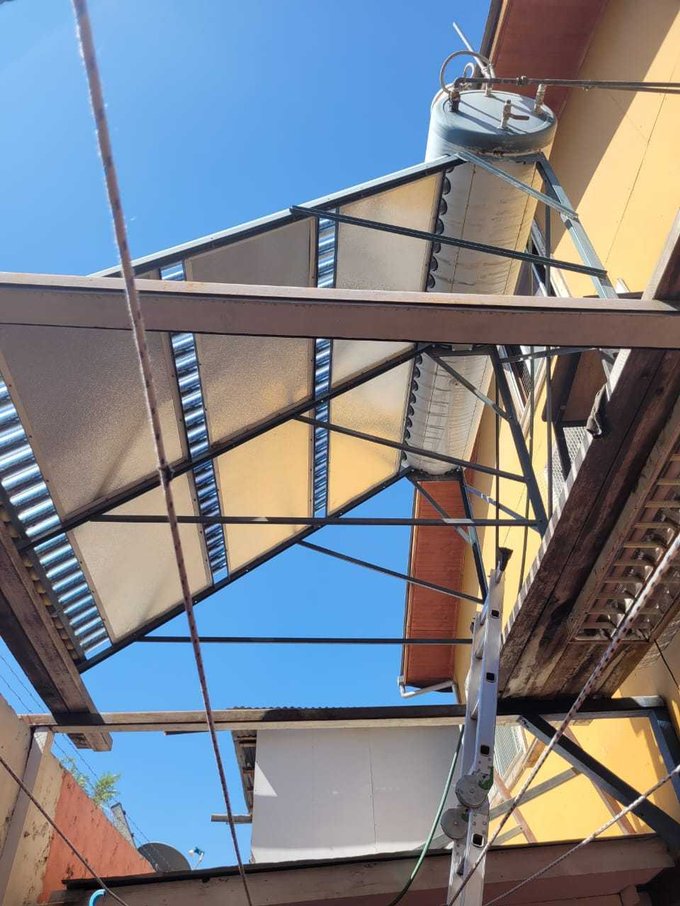 Patio, mitad techado con viga a la vista, instalación de lavadora, calefón, Panel SOLAR, horno grande