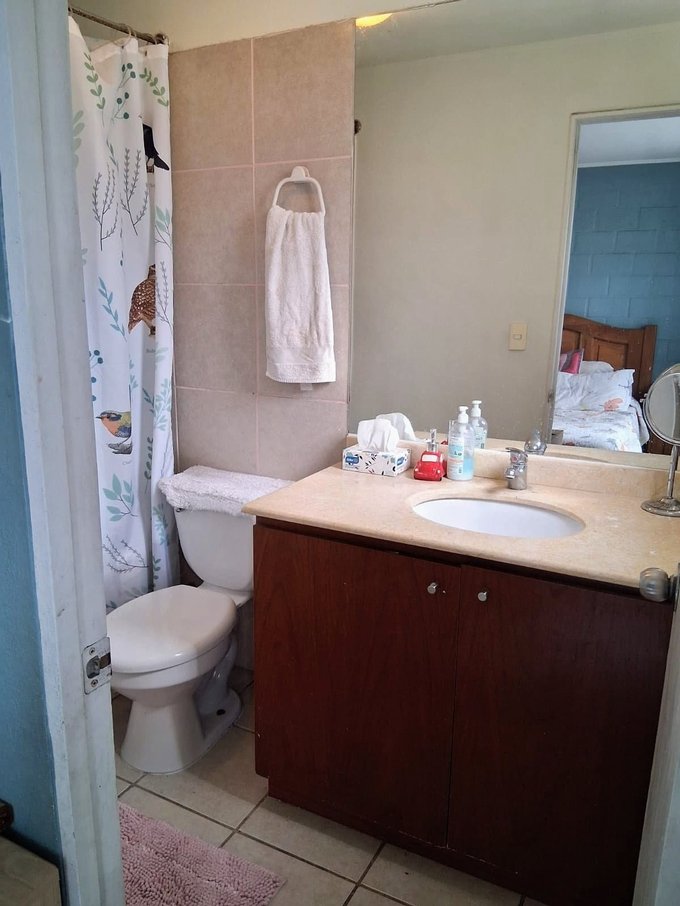 3 dormitorios todos con closet, 2 baños completos con tina, pequeña oficina para teletrabajo, logia para lavado, gran patio con hermoso Quincho techado, bogeda.