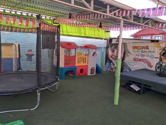 Mobiliario y equipamiento completo para su funcionamiento. Decoración infantil con murales y colores acordes al lugar. Colchonetas, divisores de espacios, mudadores materiales educativos. Baños para niños y baño para adultos. Salón principal amplio y luminoso. Patio exterior con pasto sintético, casa de juegos de madera y zonas seguras. Cuenta con patente comercial y autorización por la junji para poder funcionar sin problemas.