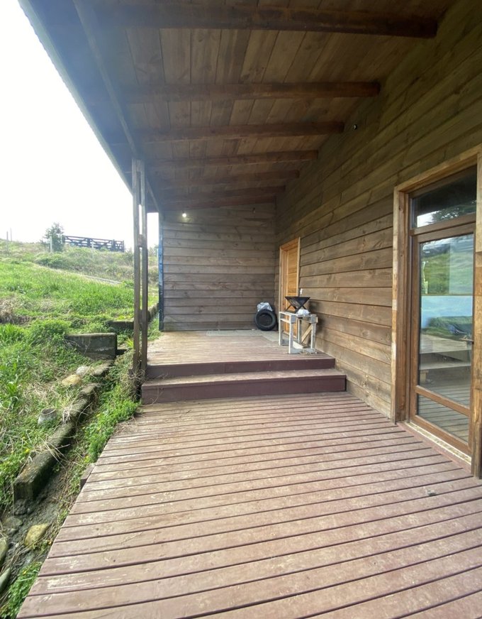 Living en distinto nivel de doble altura, amplio y con vista al mar, con amplia terraza que bordea el frente de la casa.