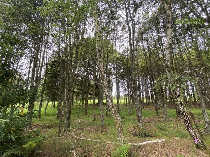 Terreno de forma regular con árboles nativos y frutales.