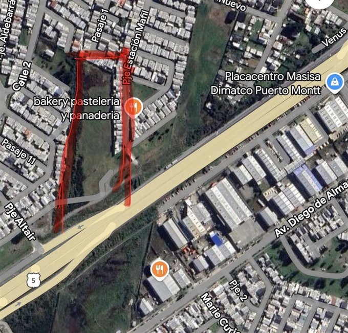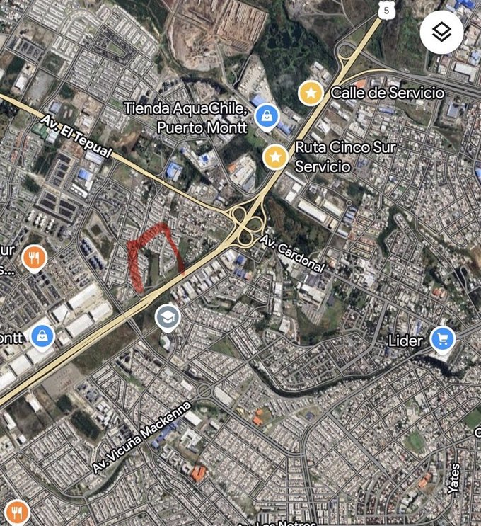 Mapa - Puerto Montt, Terreno de 11.600 mt2, para contrucción Comercial o Industrial a oriila ruta 5 sur Puerto Montt