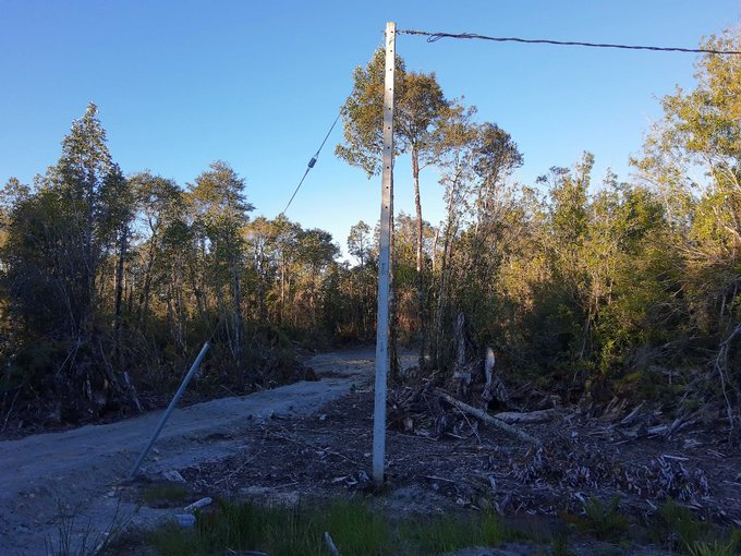 Poste eléctrico cercano al límite de la propiedad.