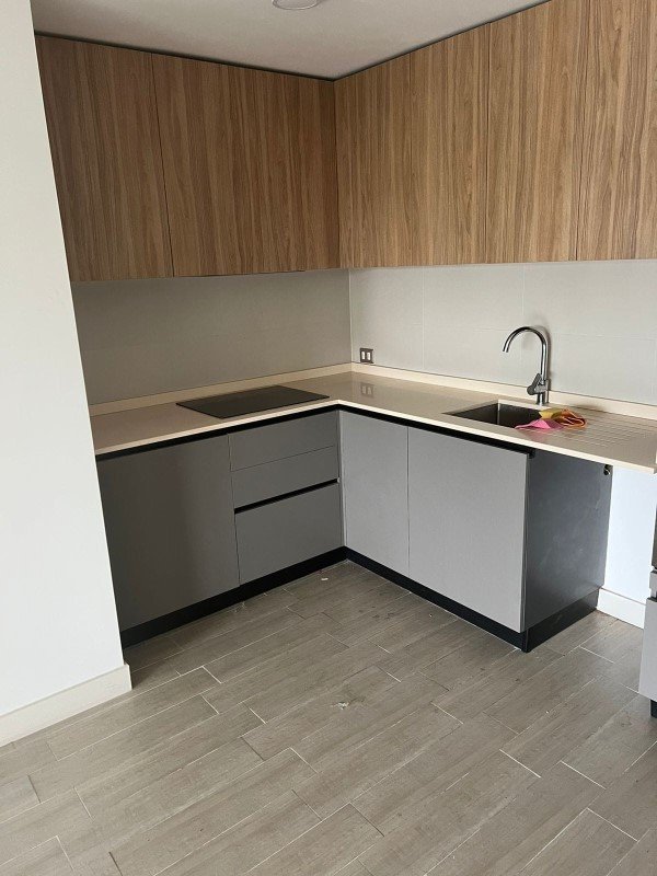 El departamento es full electric y lancocina esta equipada con encimera vitrocerámica, horno, campana, muebles dencocina italianos con cubierta de cuarzo y pisos de porcelanato. Posee calefacción por piso radiante. Ventanas termopanel folio pvc madera.