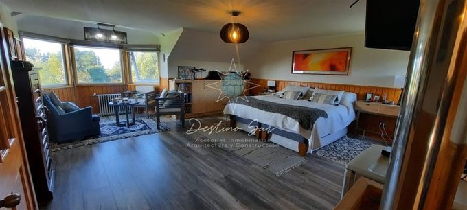 Amplio dormitorio principal en suite, con área de estar privada y vista en altura al lago y a los volcanes Osorno y Calbuco, baño luminoso y dos walk-in closets (uno de ellos ideal como home office).