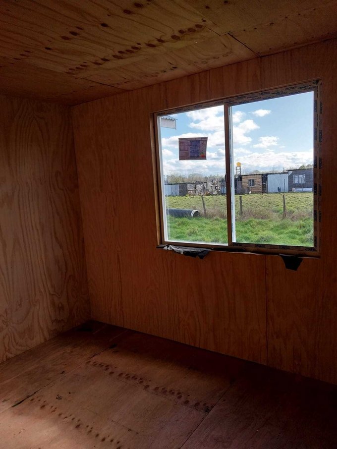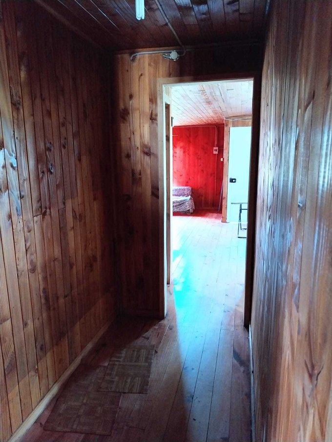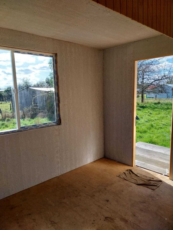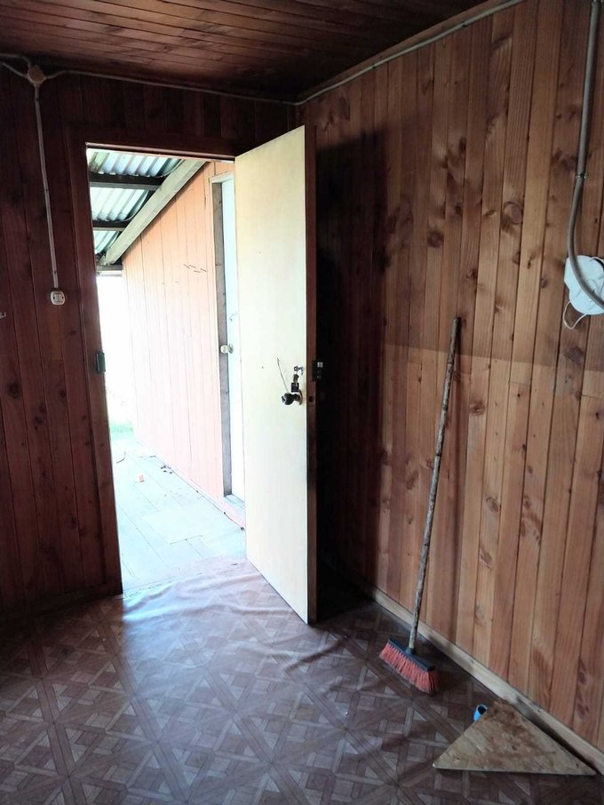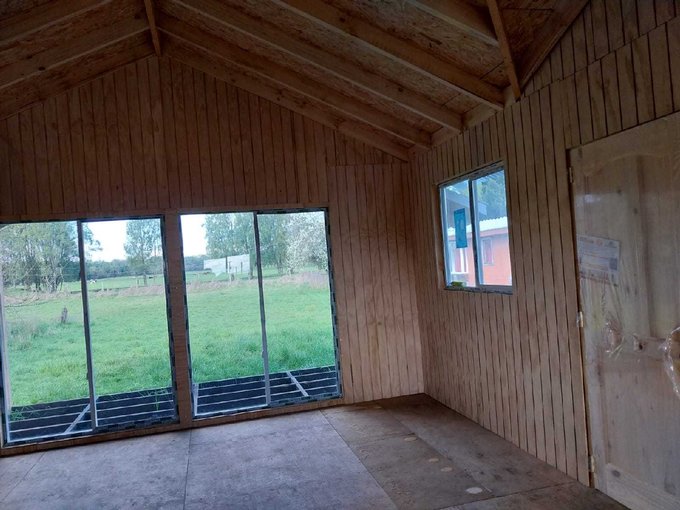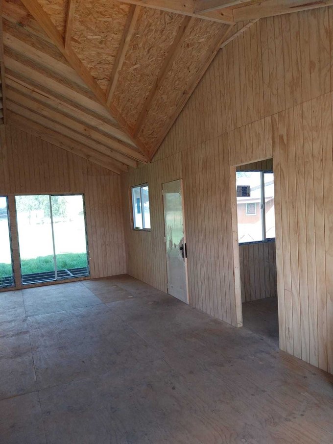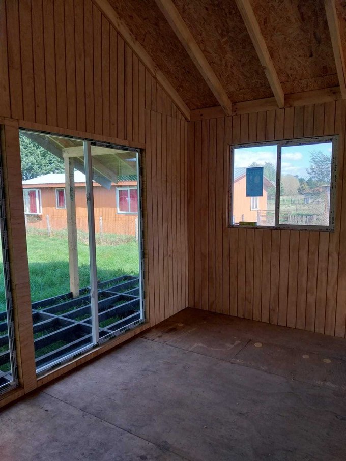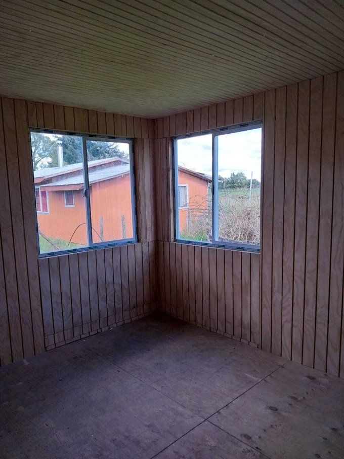 La propiedad cuenta con dos casas, ambas de madera y construidas sobre pilotes de cemento. Una de ellas es antigua y cuenta con 54 m2 aproximadamente, dos dormitorios y 1 baño. La otra de 92 m2, con alto avance de construcción, realizada en con buena aislación en muros y cielos, planchas de OSB y revestida externamente en siding fibrocemento e interior con mdf ranurado, piso madera terciada estructural. Esta tiene 3 dormitorios y dos baños, living comedor con cocina americana, ventanales de pvc con vidrios simples, sector terraza techada.