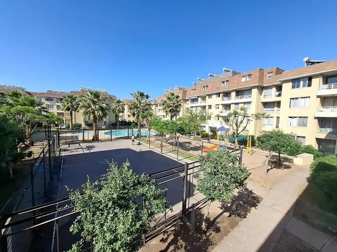 Condominio con conserjería 24/7, 2 piscinas, áreas verdes, juegos infantiles, estacionamientos de visita , gasto común $55.000; entorno con colegios (Nuevo Mundo, Weston Academy, Colegio Santiago, San Isaac Jogues), supermercados (Lider, Tottus, Acuenta, Lider Express), gimnasios y parques cercanos, además de rápida conexión a autopistas (Vespucio Norte, General Velásquez) y a minutos de Mall Arauco Quilicura, Mall Plaza Norte y aeropuerto