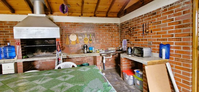 Este gran quincho es ideal para reuniones familiares o con amigos. Pero perfectamente con tabiquería, puede transformarse en una casa, incluso se podría ampliar. Adosado al quincho tenemos un baño completo.