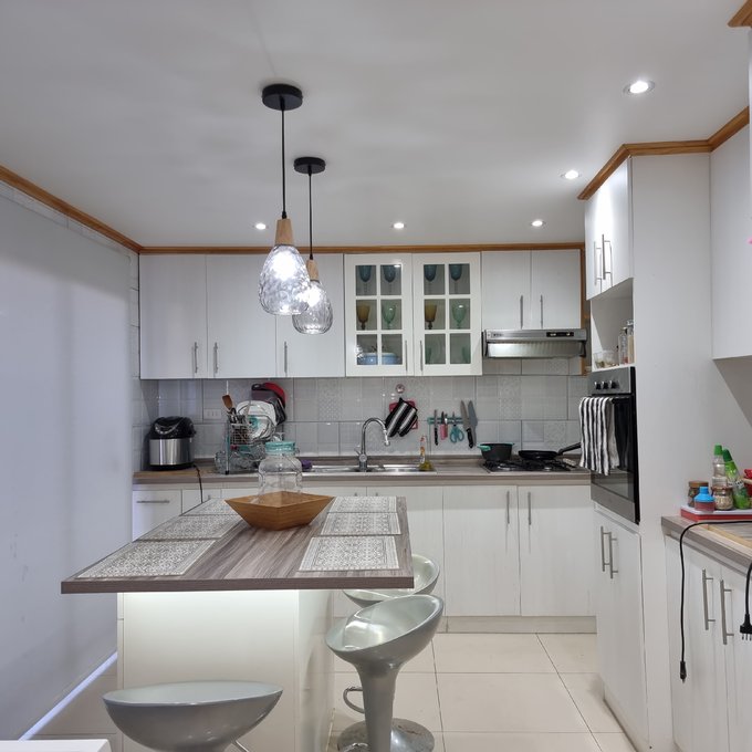 Casa de dos pisos, excelente ubicación a pasos de avenida principal primer piso sólido, living comedor buen tamaño , un baño completo , cocina amplia completamente amoblada muy moderna, con isla, cocina empotrada, horno, campana y piso cerámico .