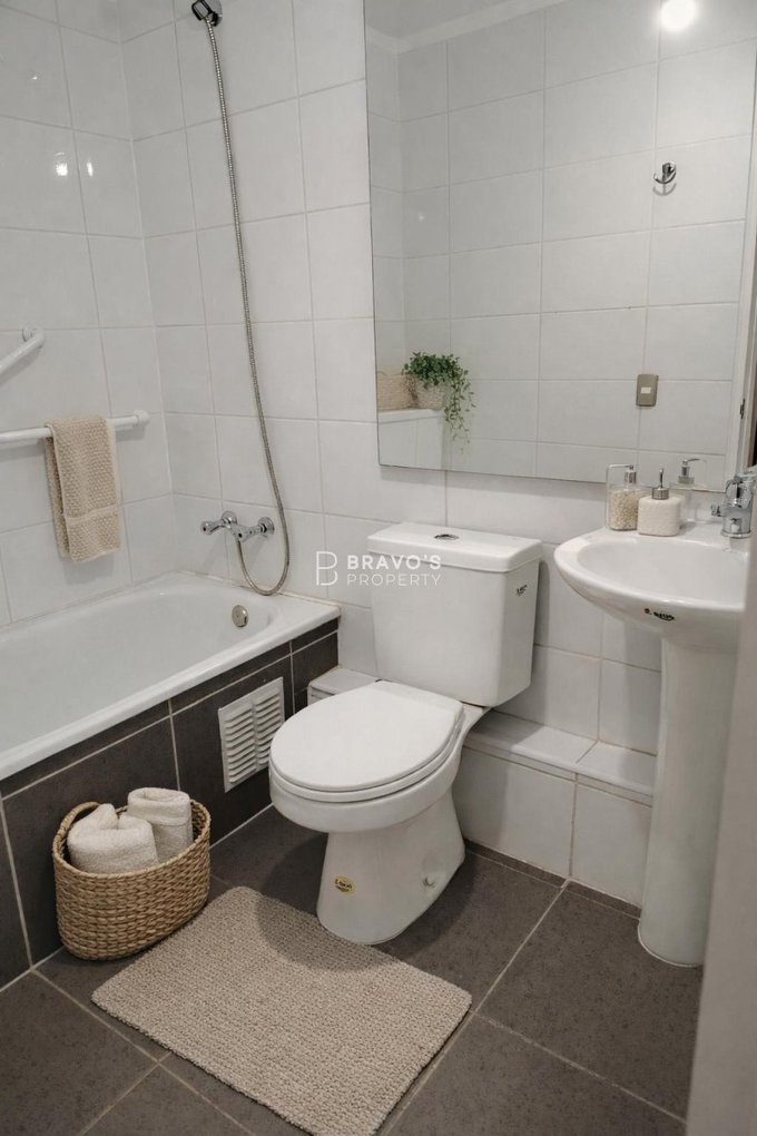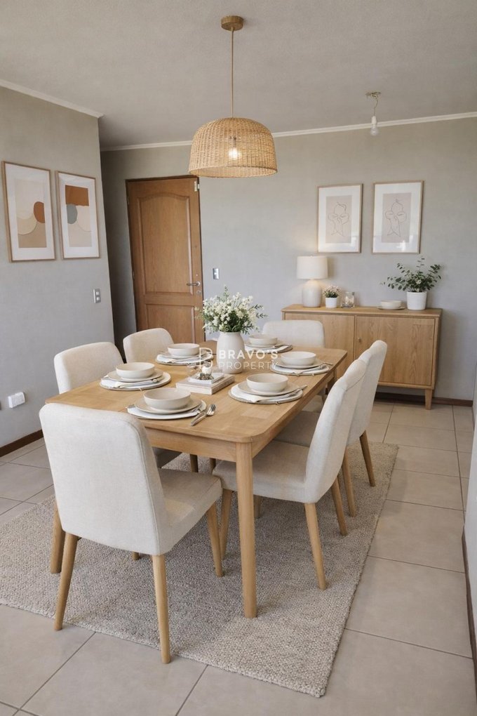 El departamento cuenta con 3 dormitorios, principal en suite con salida a terraza privada y una hermosa vista. Son 2 baños completos con tina, amplio living-comedor con salida a segunda terraza con vista a jardines, y cocina amoblada y equipada con horno, campana y encimera a gas nueva. Incluye estacionamiento techado a nivel.