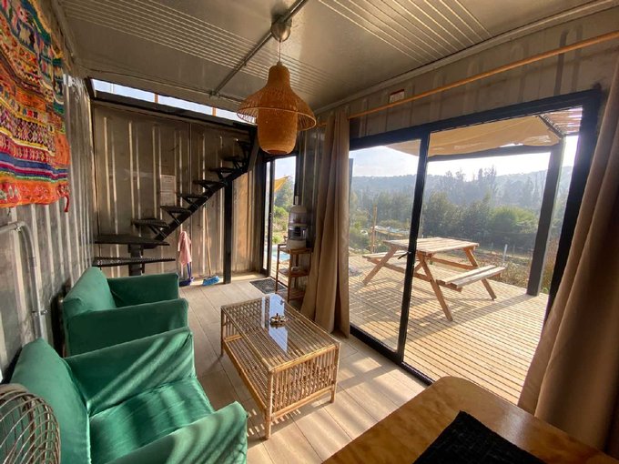 Construidas en Container Reefer (con aislación) de dos pisos y cuentan con Sala de Estar, Cocina abierta, Dormitorio en Suite, Terrazas en ambos pisos, Parrilla para Asados, Piscina privada de 3x3, extensas áreas verdes.