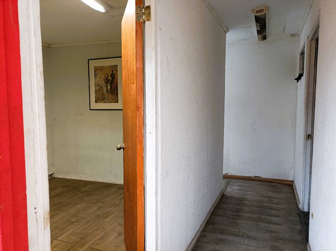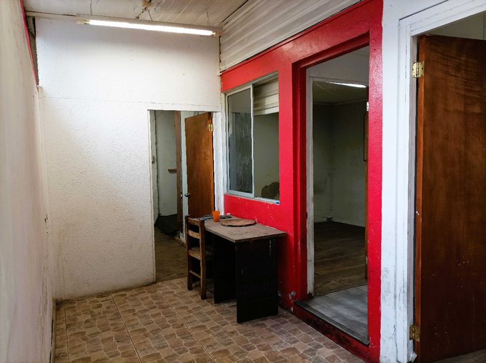 La casa de un piso, con 3 dormitorios, 1 baño y una sala con cocina.