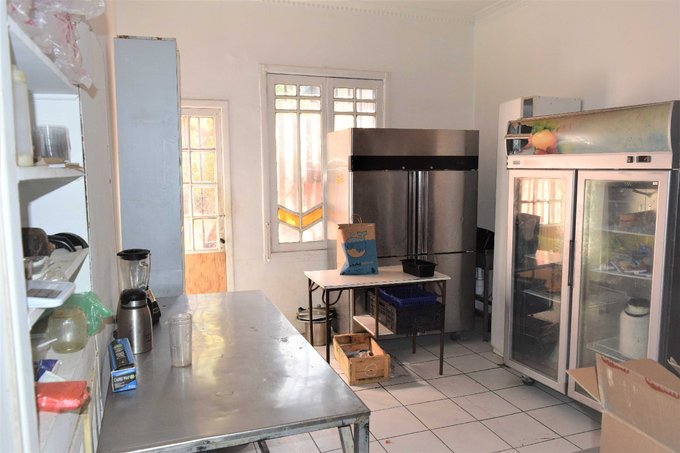 Primer piso: Hall de entrada, living amplio y comedor separado, cocina, baño y local comercial anexo donde estaba el estacionamiento, con entrada independiente, actualmente arrendado para venta de comida preparada. Patio trasero con árboles y una bodega.
