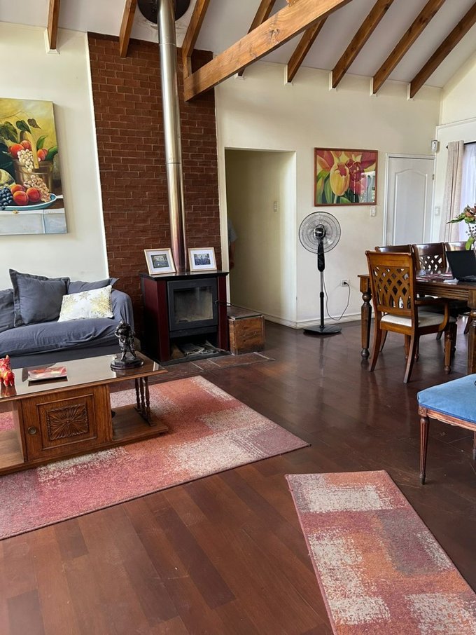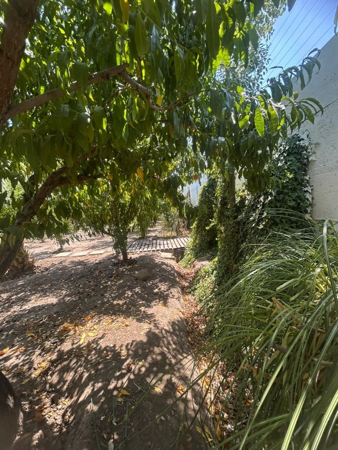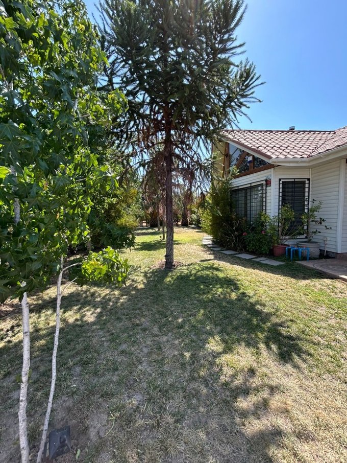La casa tiene árboes frutales y rosales que dan vida a la etensión de terreno de la casa. Vive en una pequeña parcela en Los Andes!!