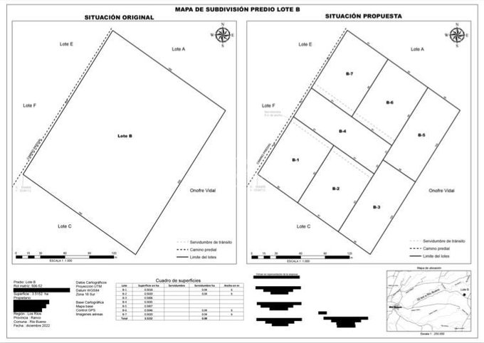 Terreno plano de 3,5 has, agrícola y subdividido en 7 parcelas de 5.000 m con ROL propio.