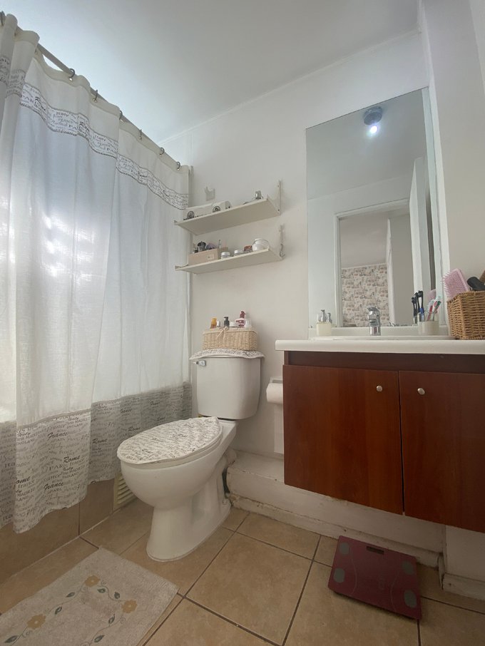 - Principal con piso flotante, closet, baño en suite, tina, vanitorio, luz y ventilación natural.