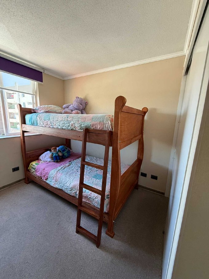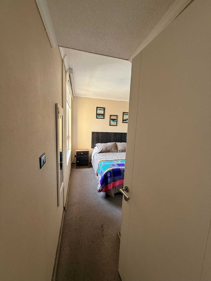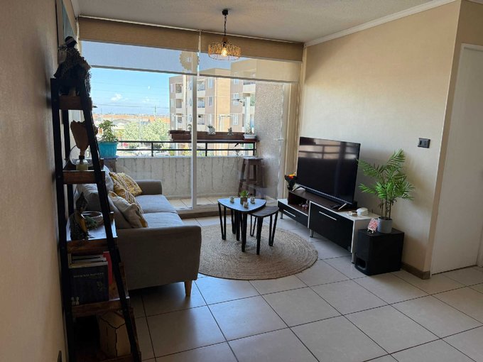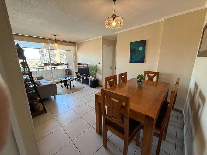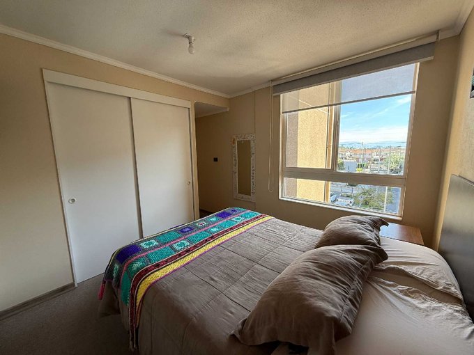Dpto de 53 mts totales en excelente estado de conservación, con solo 5 años de antigüedad, ubicado en 3er piso (edificio de 5 pisos), con vista sur-poniente. Piso cerámico, con cocina cerrada, conexión a gas, logia con calefont y conexión a lavadora, terraza de 3 metros cuadrados, dormitorios con closet y piso alfombrado. Incluye baño con tina, ventanas con termopanel y cortinas rollers dobles (primera es visillo filtra rayos UV y la segunda es blackout).