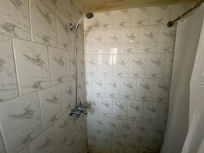 Baño con ventilación natural y ducha abierta con cortina completa.