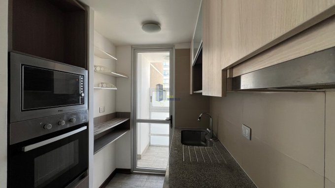 Características del departamento: 2 dormitorios, 2 baños, Dormitorio principal muy amplio, Terraza, Orientación oriente (muy buena luz natural), Cocina cerrada e independiente, Logia, Piso de porcelanato, 2 estacionamientos en subterráneo, 2 bodegas.
