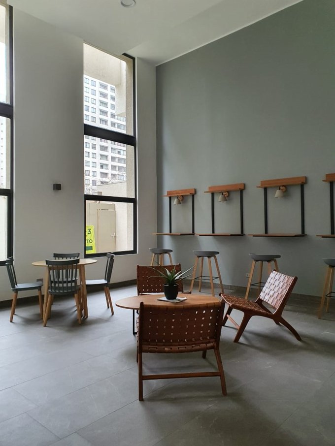El departamento cuenta con dos dormitorios, un baño completo, estacionamiento y está orientado hacia el poniente, garantizando una buena iluminación natural durante las tardes. Los gastos comunes son accesibles, aproximadamente $60,000 pesos mensuales. Además, este espacio incluye una variedad de comodidades que mejorarán tu calidad de vida: