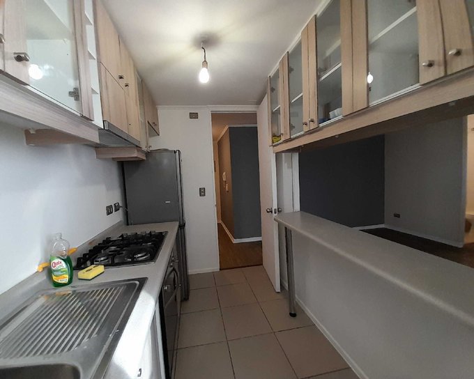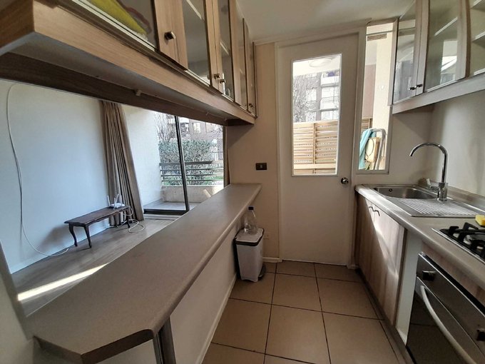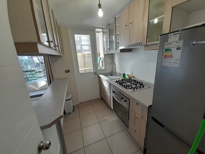 Cocina semi Abierta Amoblada. Equipada con Horno, Encimera y Campana.