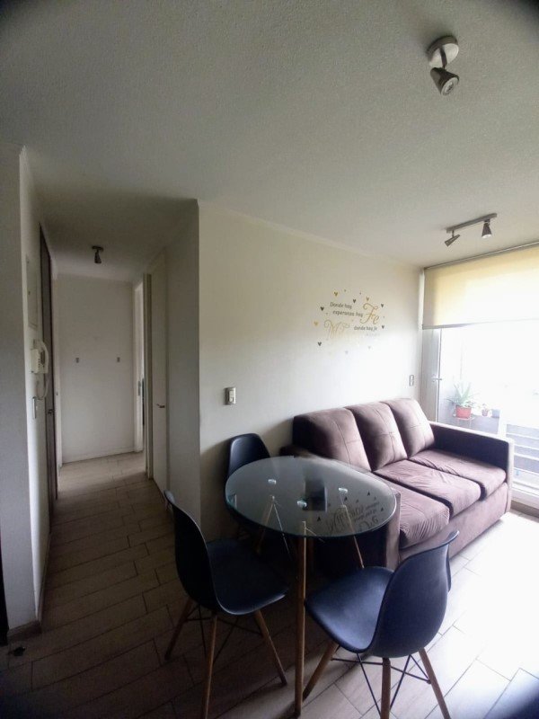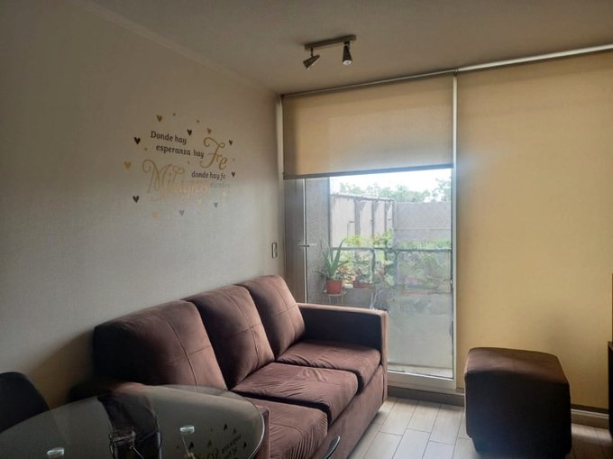 Dormitorio Principal de buen tamaño, Segundo Dormitorio con capacidad para cama de 1 plaza, con closet. 1 Baño, Cocina integrada amoblada y equipada, Living con salida a Balcón. Conexión para lavadora. Agua caliente por Termo Eléctrico. Cómodos espacios, Elegantes terminaciones. Piso 2, Vista Poniente.