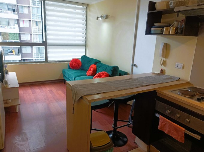 Lindo departamento de 1 dormitorio y 1 baño, impecable, ubicado en calle Santa Victoria esquina Carmen. A una cuadra de calle Marín por el norte y Av. Santa Isabel por el sur.