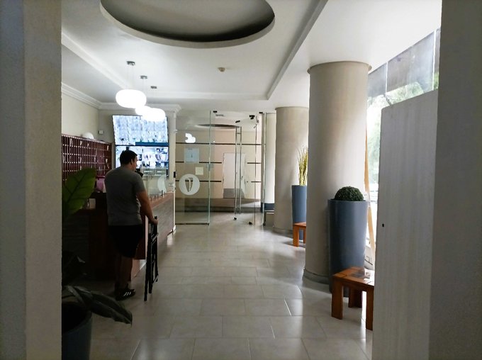- Condominio moderno de 26 pisos con hall de acceso de doble altura.