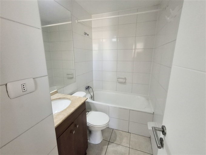 Amplio departamento cuenta con una habitacion en suite, un baño completo, cocina integrada con encimera de 2 hornillas, campana y horno electrico completamente nuevo. Living comedor con salida hacia una luminosa terraza, ventanas de aluminio y piso flotante en todo el departamento. Gastos comúnes $60.000 Aprox.