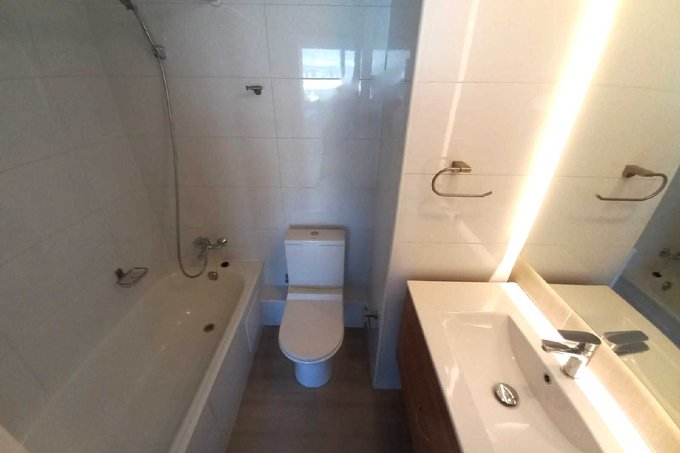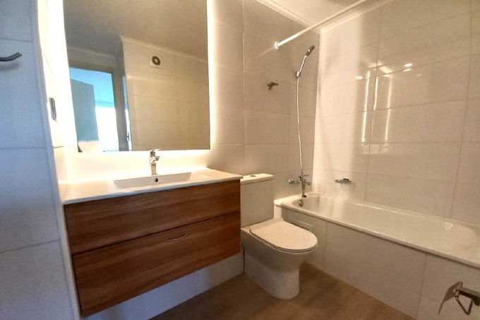 Cuenta con 2 dormitorios, 2 baños, cocina americana, living-comedor y amplia terraza orientación oriente con vista a la cordillera. Terminaciones: cubierta de granito, encimera vitrocerámica, mesa de madera natural, lavaplatos y grifería Kröbel inoxidable, porcelanato, cerámicos en cocina y baños, vanitorios aéreos, tina con ducha teléfono, extracción forzada, ventanas PVC termopanel, alarma y conexión a lavadora.
