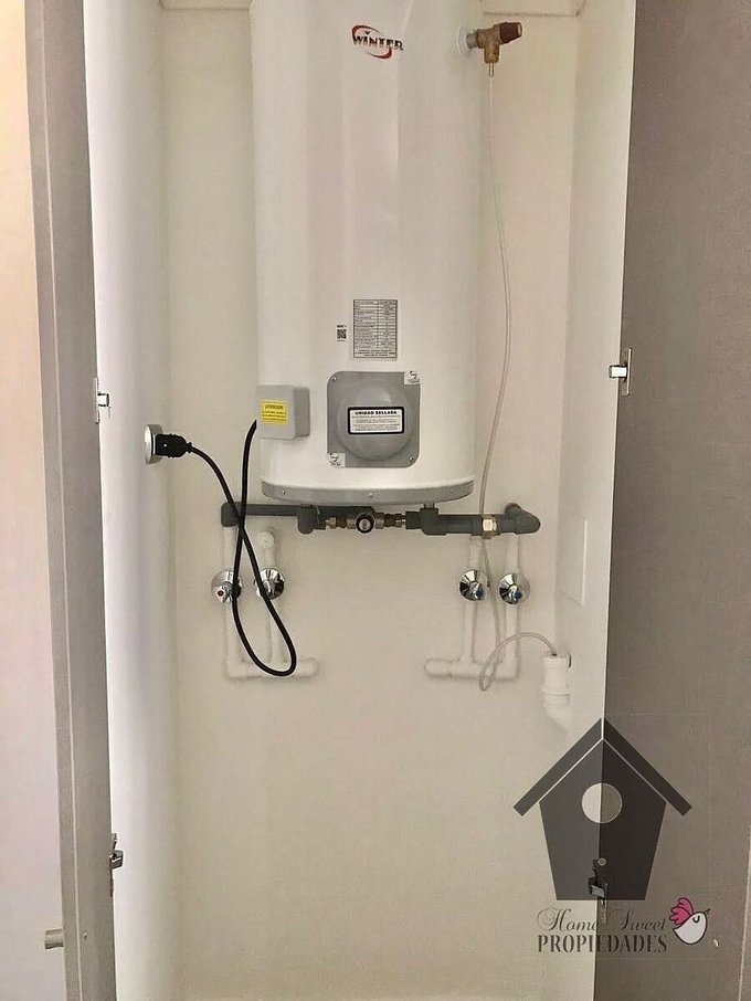 Piso gres porcelánico tipo madera en todos los ambientes. Cubierta Quartz Stone en muebles de cocina. Puerta de corredera para pasar del living al dormitorio, lo que permite integrar o separar los espacios. Cocina amoblada y equipada con encimera vitrocerámica de dos platos, horno eléctrico empotrado, campana extractora. Baño completo con closet de lavado el que incluye instalación para lavadora y un termo eléctrico para el agua caliente. Baño con ventana (ventilación Natural). Puerta de acceso enchapada en madera.