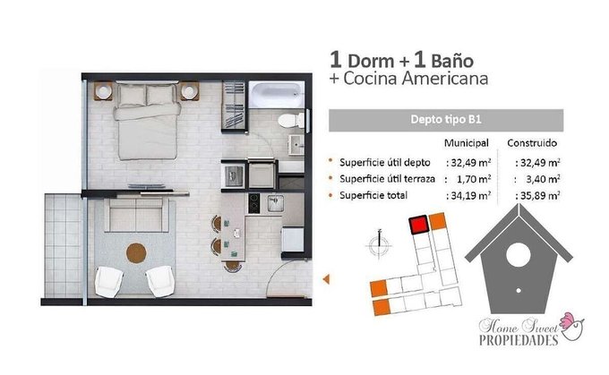 Departamento se encuentra arrendado por lo que es ideal para quien desee invertir en una propiedad y tener ingresos desde el primer día. Departamento tiene 34 m2 municipales (SII),
