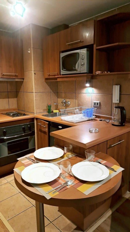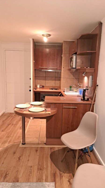 Cocina equipada con encimera eléctrica, horno empotrado eléctrico, frigo bar, todo en perfecto estado y muy bien mantenido. La comunidad es muy agradable ya que viven personas de todas las edades, poseen un chat grupal del edificio donde siempre están comunicados.