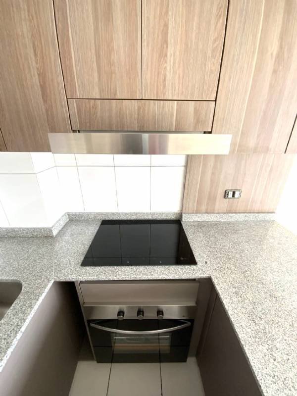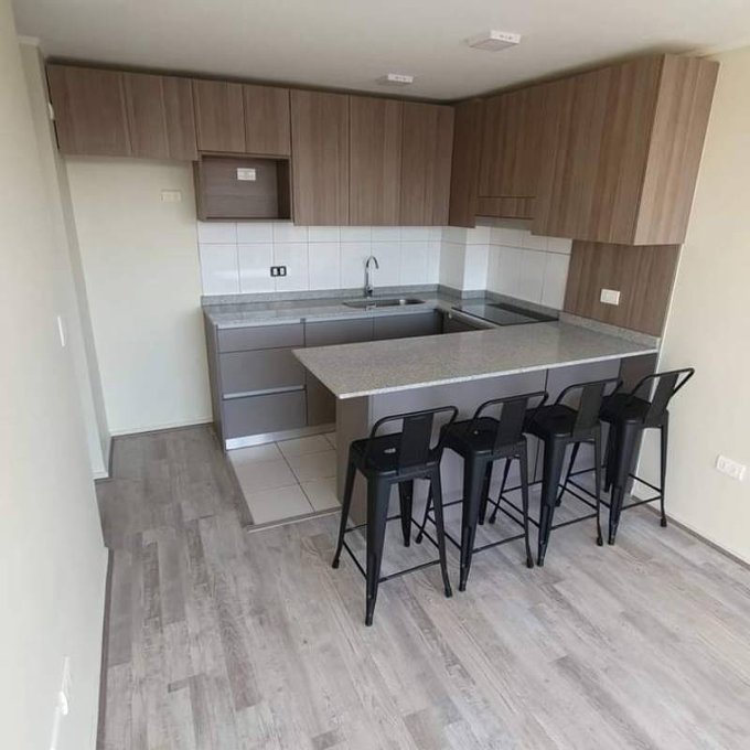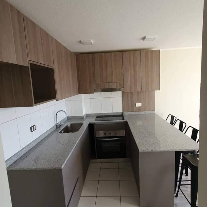 Cocina americana con terraza vista despejada desde el Living.