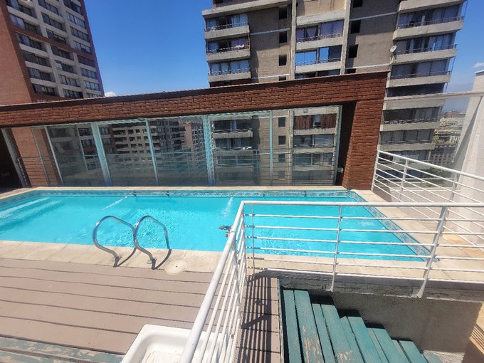 Departamento ubicado en piso 8, cuenta con hall, estar, comedor, cocina americana amoblada y tiene horno, encimera y campana, un dormitorio con un baño en suite, walking closet y terraza en el dormitorio principal, living comedor y bodega. El edificio se encuentra en la acera sur de la calle Santo Domingo, entre las calles Morandé y Teatinos y cuenta con un total de 22 pisos y 2 subterráneos con 4 ascensores, dividido en dos torres. El edificio cuenta con los siguientes equipamientos: Piscina, Quinchos, Sala Mutiuso, Gimnasio Ubicados en el piso 22 , Sala de Lavado , areas verdes y juego para niños ubicado en el piso 1.