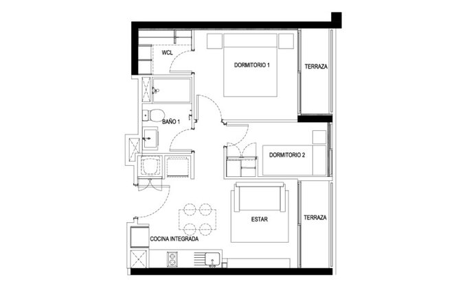 Materiales de primera calidad que destacan mesón de piedra, ventanas con marcos de pvc, piso porcelánico imitación madera, artefactos en acero inoxidable que garantizan durabilidad y confort.