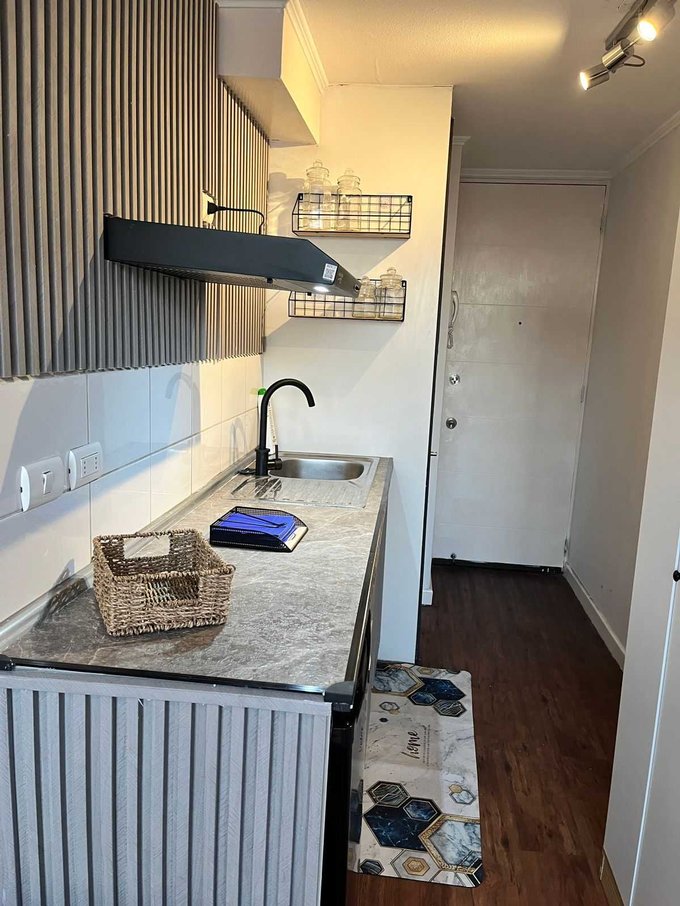 - Cocina americana amoblada con encimera, horno empotrado, campana, todo eléctrico.