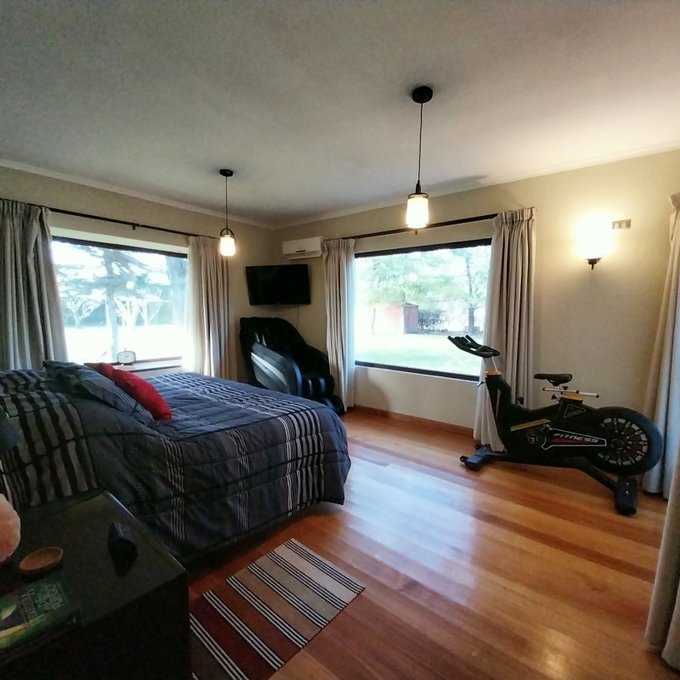 Distribución: hall de acceso, al centro living comedor luminoso, baño de visita. Ala sur: amplia cocina, pieza de servicio en suite, logia exterior parcialmente techada. Ala norte: pasillo que accede a sala de estar, oficina, 3 habitaciones, 2 de ellas en suite, dormitorio principal cuenta con walking closet, baño con sauna, jacuzzi. Estufas a pellet, y aire acondicionado en dos habitaciones. Piso flotante en sector dormitorios, cerámica y porcelanato en el resto de la propiedad. Ventanas de termopanel.