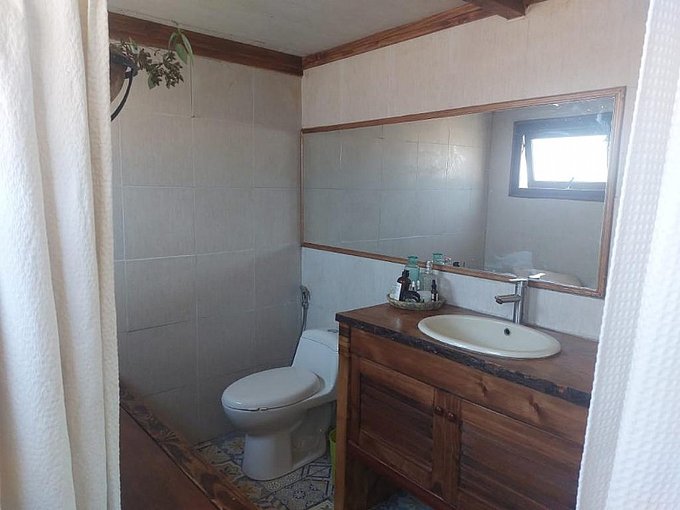 Hermosa casa en venta 140 m2 construidos, 5.000 m2 terreno cuenta con dos habitaciones, dos baños, un living comedor y cocina americana, terraza y estacionamiento, espacio para fogón. Todas las ventanas son de termopanel de alta calidad. Casa de estructura de roble y fierro y aislación en adobe armado.