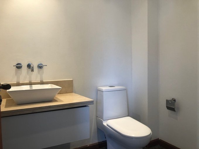 Baño de visitas independiente con cubierta de mármol