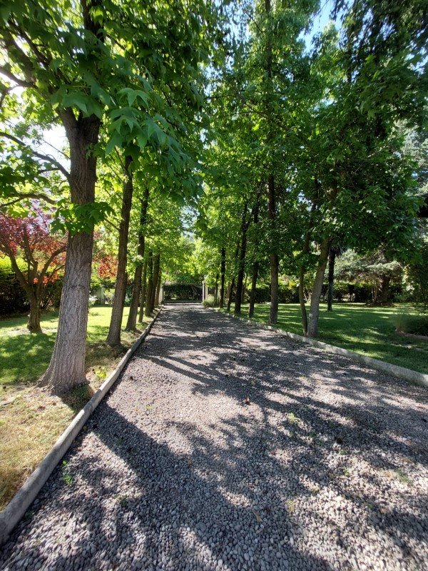 Hermosa piscina con terraza, jardín completamente formado con pasto, árboles ornamentales y frutales, estacionamiento techado para 2 autos , 5 estacionamientos sin techar .