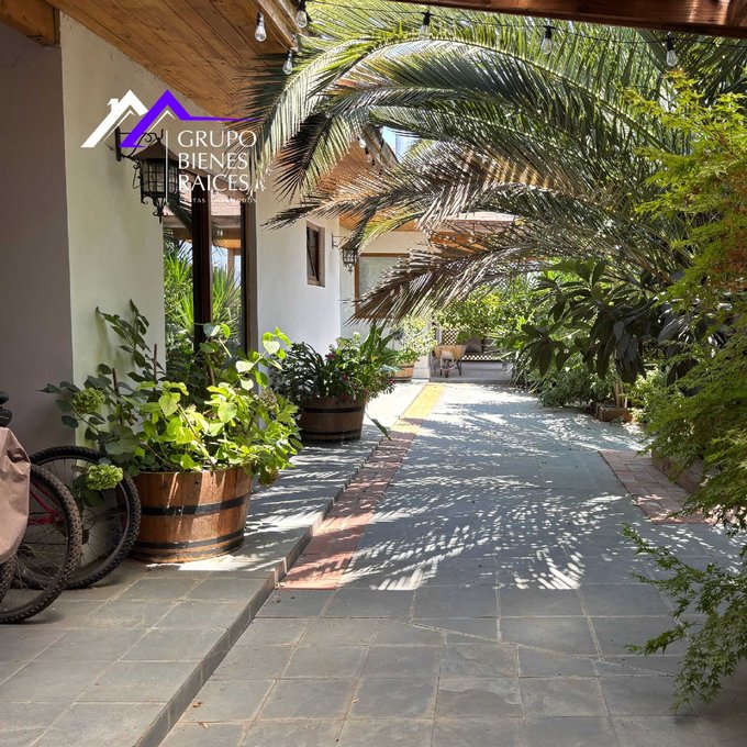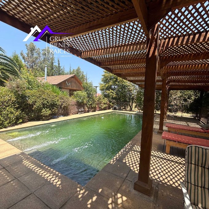 Con 8 espaciosos dormitorios y 5 elegantes baños, gran cocina con isla y cubierta granito, espaciosa logia junto a una oficina,living y comedor separados con gran espacio para muebles grandes, excelente quincho y terraza, piscina con terraza para reposeras, gimnasio, bodegas grandes, sala de bombas, árboles frutales de diversas frutas, arbustos ornamentales que rodean la casa, la iluminación es una de sus cualidades, ya que el sol entra por toda la casa, tiene pozo propio, sala de bombas y además cuenta con paneles solares, que te permiten un ahorro gigante en electricidad. Gastos comunes tan sólo de $68.000.- bastante económico para la zona.