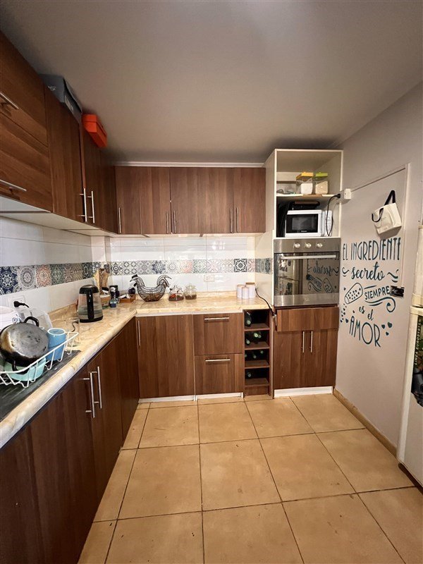 La cocina está completamente equipada con muebles empotrados, encimera, horno y campana, además de contar con el espacio necesario para almacenamiento. También posee una logia independiente, ideal para instalar lavadora y secadora, especialmente pensada para el uso de estudiantes.